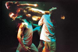 (...) But beyond words, what makes Blush a success is the perfect connection between dance, music, film, set and light. Nothing here is superfluous, everything comes together to create an avalanche of images, the one stronger than the precedent. Among them, one will not forget the girls, perched at 10 meters above the ground on metal pillars; the construction of an immense wall of bags, then its brutal collapse onto two dancers; the appe-arances and disappearances of the frog or the “hot” scenes...